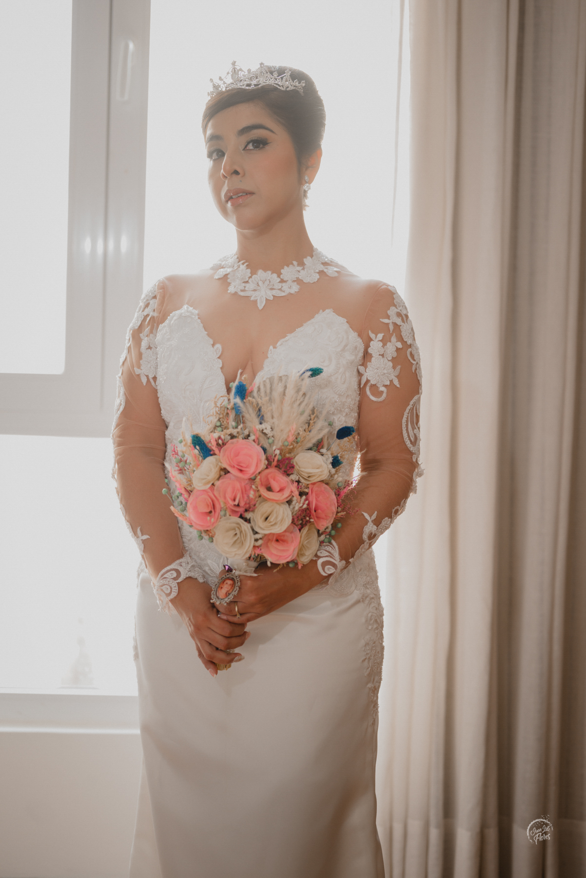 El día comenzó en el Hotel Los Portales, con una preparación tranquila y bien llevada. El maquillaje, el peinado y los detalles finales se desarrollaron sin apuros, permitiendo registrar cada etapa con naturalidad y buena luz.