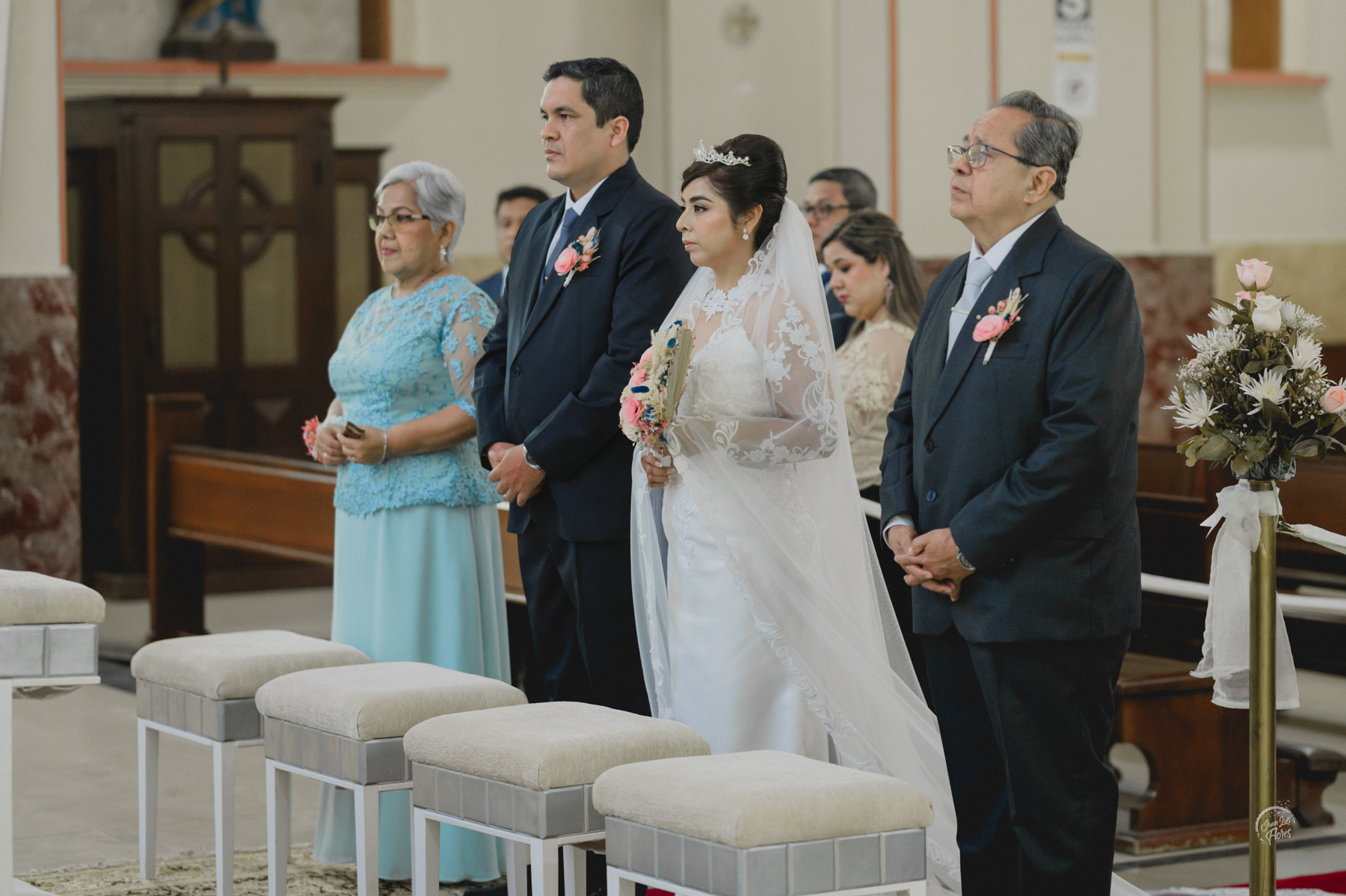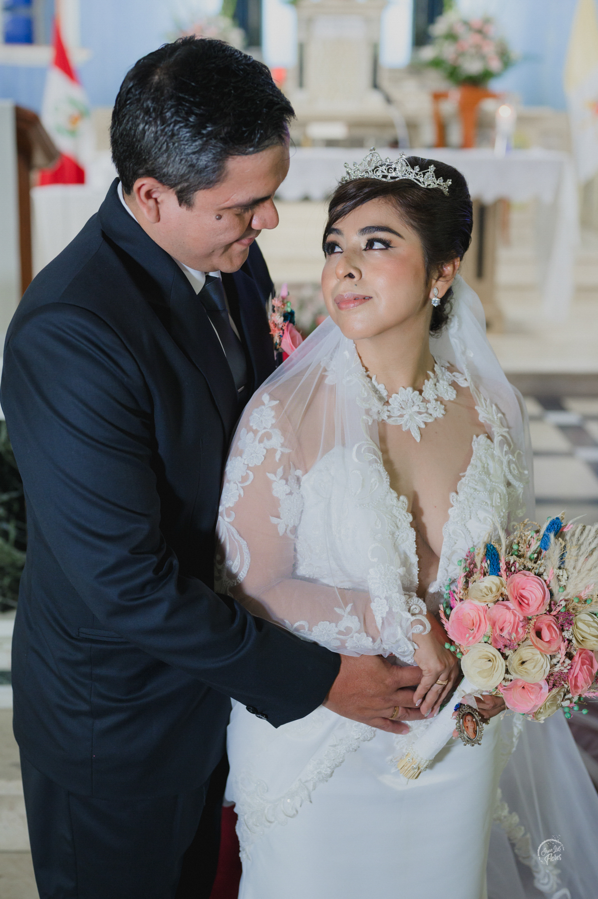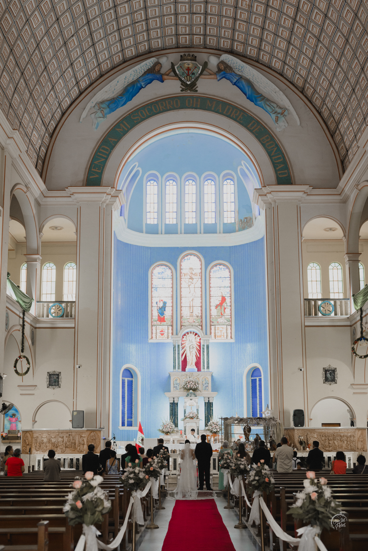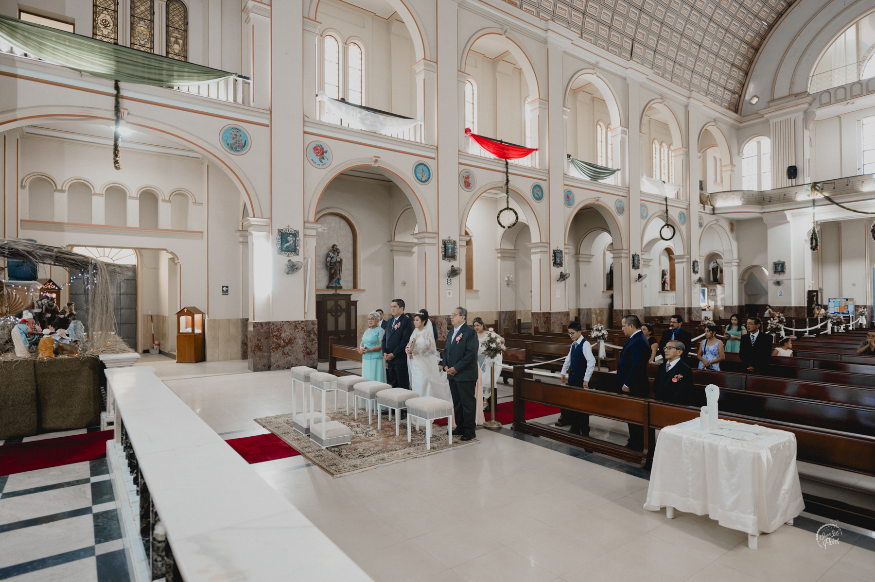 Luego, la ceremonia en la iglesia San Sebastián marcó el momento central. Un espacio clásico en Piura, donde la organización previa permitió enfocarnos en lo importante: gestos, miradas y la conexión real entre ellos.